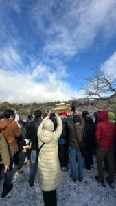 境内に足を踏み入れると、そこには息をのむような光景が広がっていました。雪をまとった金閣が静かに佇み、鏡湖池の水面にはその姿が映し出されています。雪が音を吸い込むのか、多くの人が訪れているにもかかわらず周囲は不思議なほど静かで、時間がゆっくり流れているように感じられました。