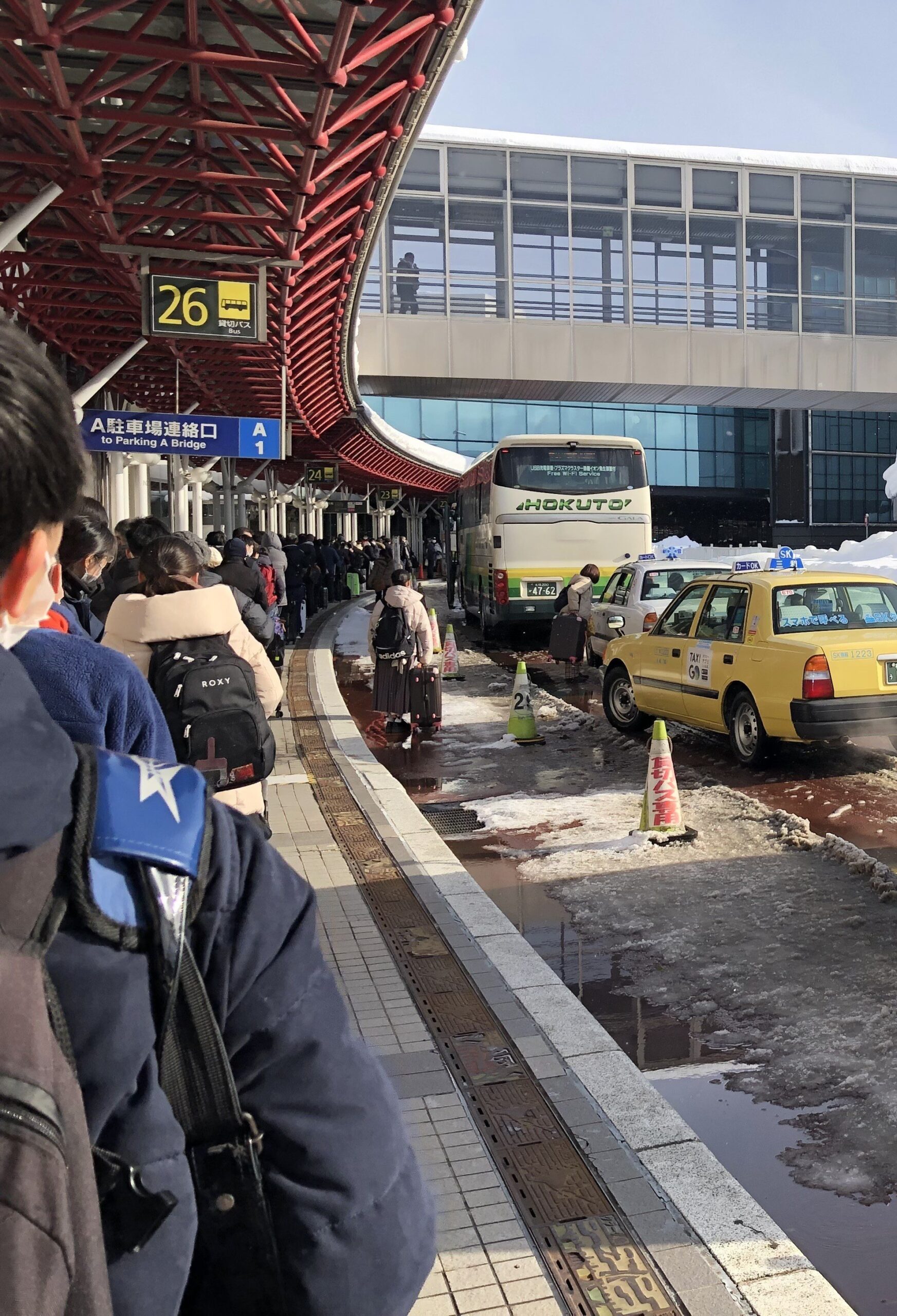 しかし、連日の大雪のためJRは運休。札幌行きのバスには長蛇の列ができていました。