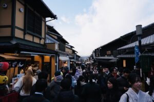 お土産店が立ち並ぶ清水寺の参道 インバウンドも多く賑わっている