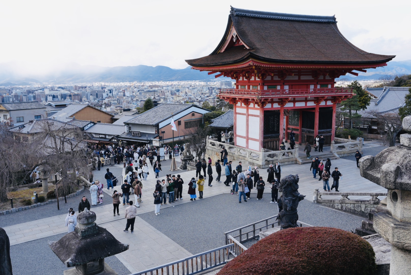 2024年、京都市には年間5600万人の観光客が訪れています。そのおよそ1割に相当する500万人が参拝に訪れるという清水寺。大きな道路から清水寺までをつなぐ清水坂の門前町も年間を通して大盛況です。国内外問わず観光客が押し寄せます。清水寺から一番近いバス停「清水道」では、50人以上が行列をなす光景もしばしば。門前町にとっても、清水寺の存在は欠かせません。そして、清水寺がもたらす経済効果は計り知れません。