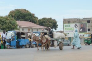 沿道では多くの人が果物や野菜、スマホの周辺機器、雑貨などを売っています。車に乗り窓を開けているとティッシュや絨毯、ガンビア名産のカシューナッツなどを他の車を避けながら売りにきます。街中では横断歩道以外の道路の横断が当たり前で、クラクションの音があふれていました。砂埃がひどく整備されていない道路も少なくありません。他にも駐車の際の車同士の多少の接触などは気にせず何事もなかったように運転していることに驚かされました。犬や猫、ヤギ、馬なども住民と共に生活しており、車を避けるように通りを歩いています。多くの哺乳類がいるため、ガンビアに訪れる前に狂犬病の予防接種を受けることも大切なのが分かります。