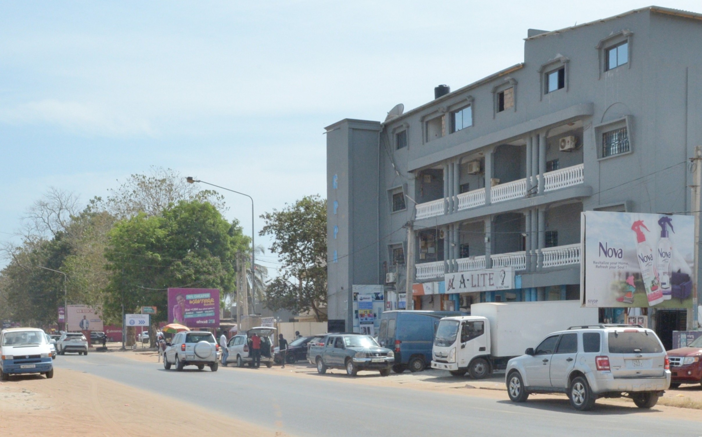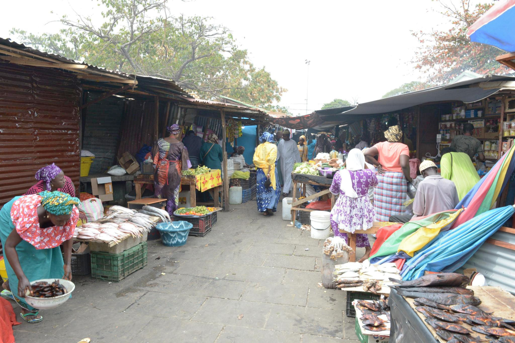 沿道では多くの人が果物や野菜、スマホの周辺機器、雑貨などを売っています。車に乗り窓を開けているとティッシュや絨毯、ガンビア名産のカシューナッツなどを他の車を避けながら売りにきます。街中では横断歩道以外の道路の横断が当たり前で、クラクションの音があふれていました。砂埃がひどく整備されていない道路も少なくありません。他にも駐車の際の車同士の多少の接触などは気にせず何事もなかったように運転していることに驚かされました。犬や猫、ヤギ、馬なども住民と共に生活しており、車を避けるように通りを歩いています。多くの哺乳類がいるため、ガンビアに訪れる前に狂犬病の予防接種を受けることも大切なのが分かります。