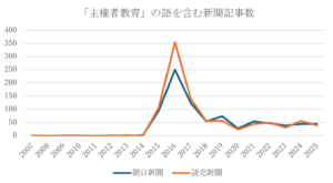 主権者教育に関する報道は10年前の18歳選挙権開始の前後に急増したものの、現在は少なくなっています。主権者教育に関する議論をさらに深めるには、新聞を含めたメディアが学校現場での実践を報じ、多くの人に問題提起を行うことが必要となるでしょう。