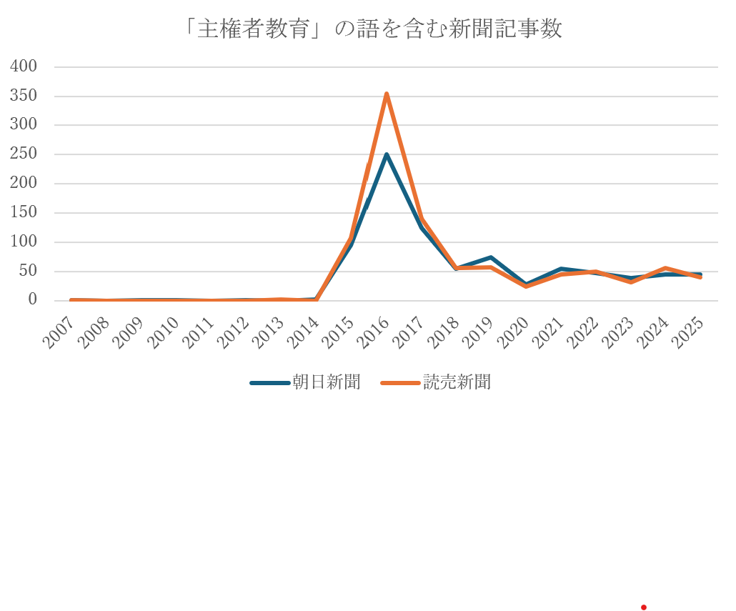 主権者教育に関する報道は10年前の18歳選挙権開始の前後に急増したものの、現在は少なくなっています。主権者教育に関する議論をさらに深めるには、新聞を含めたメディアが学校現場での実践を報じ、多くの人に問題提起を行うことが必要となるでしょう。