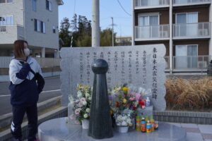 2026年3月12日、私は愛梨さんの母・美香さんの案内のもと、門脇地区を歩いた。実際に現地に立つと、愛梨さんたちが乗っていたバスが見つかった地点と幼稚園の距離は想像以上に近い。高台の園舎は、すぐそこに見える。バスの運転手や同乗していた職員は園児を連れてバスを降り、幼稚園に引き返す判断をできなかったのだろうか。疑念が募る。