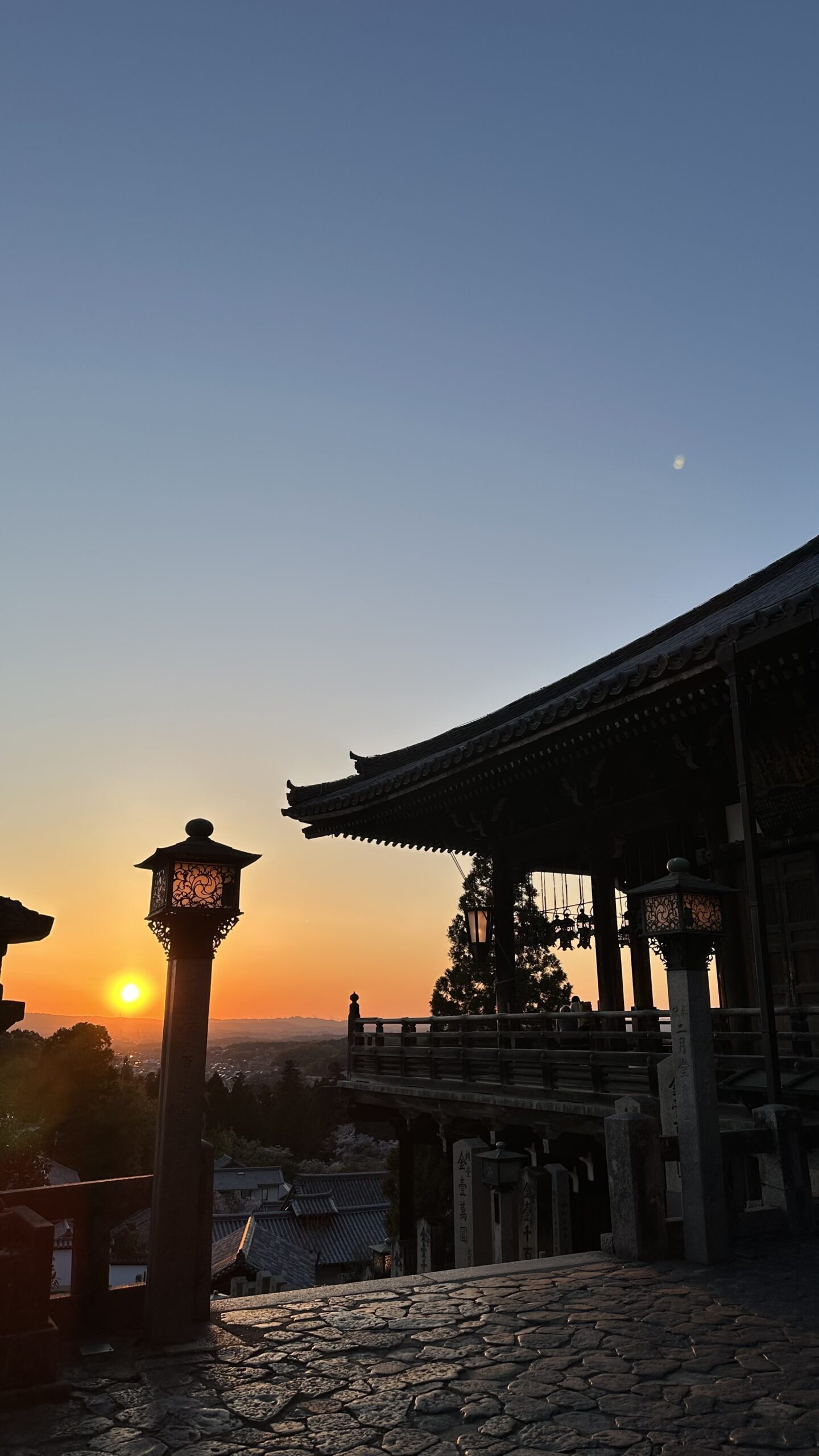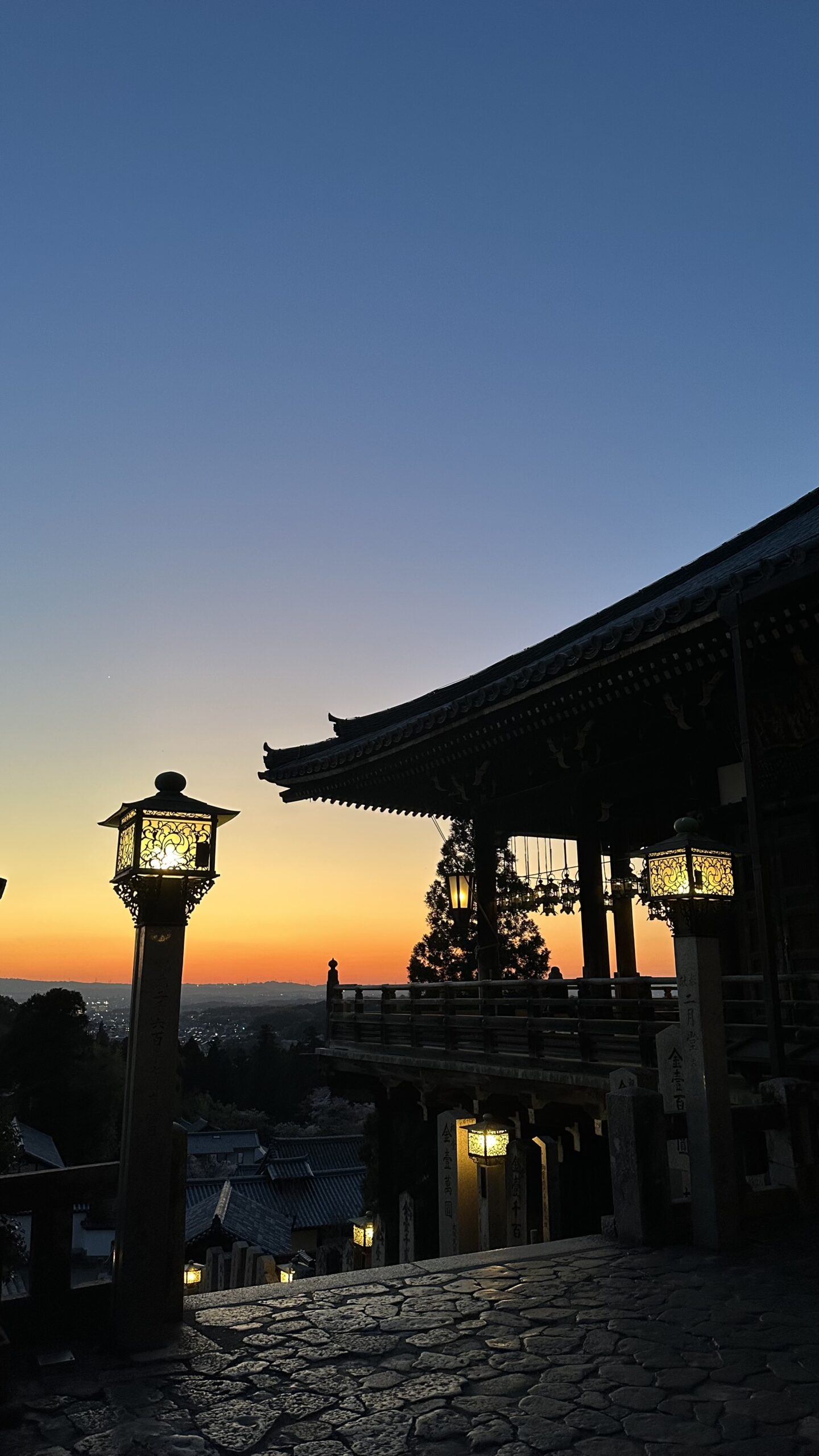 二月堂へ向かう道のりもまた魅力のひとつです。途中で振り返ると奈良の街並みが広がり、そして舞台にたどり着いた瞬間、目の前に広がる景色に思わず息を呑みます。