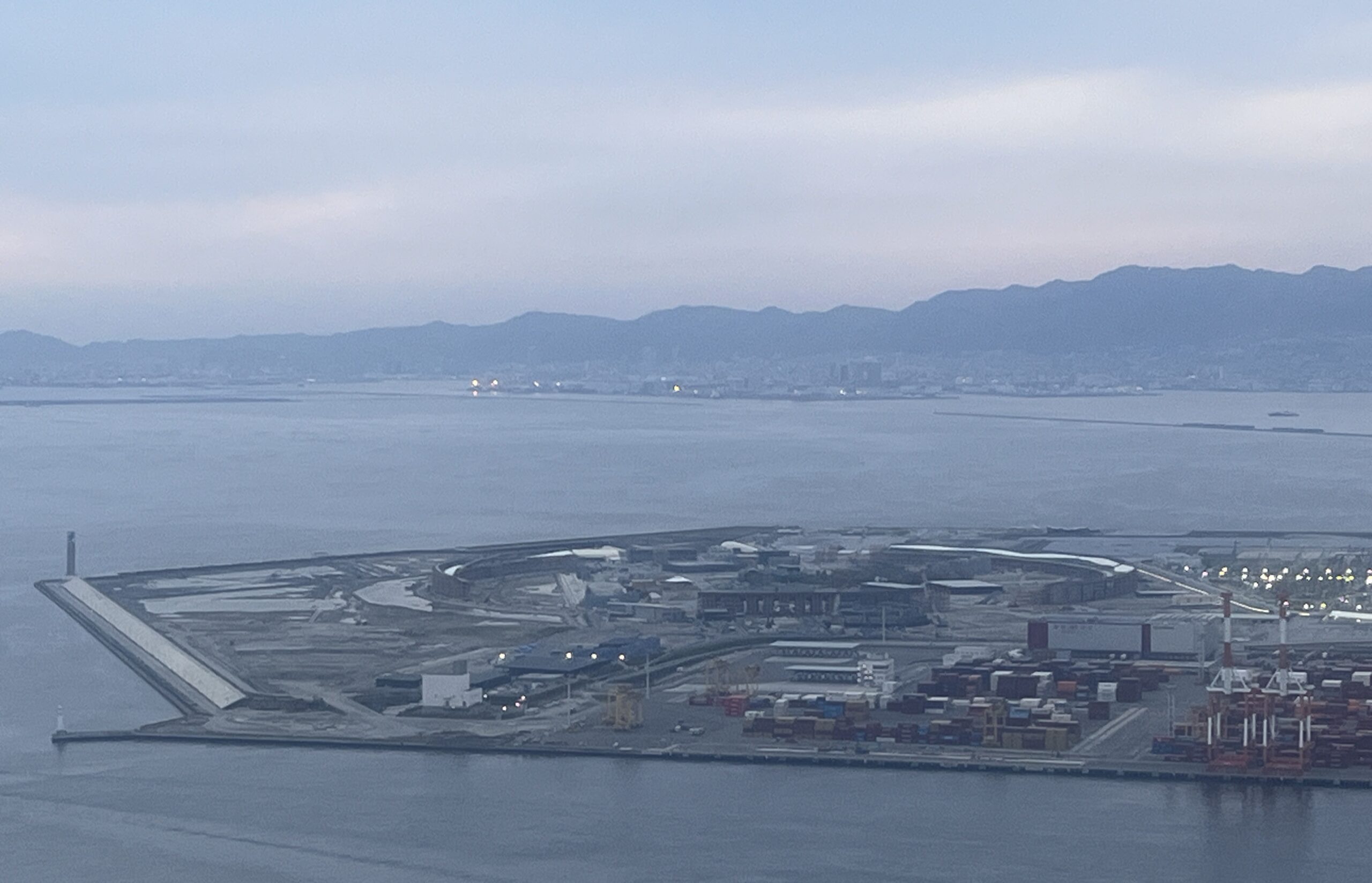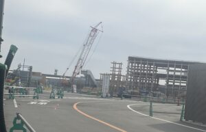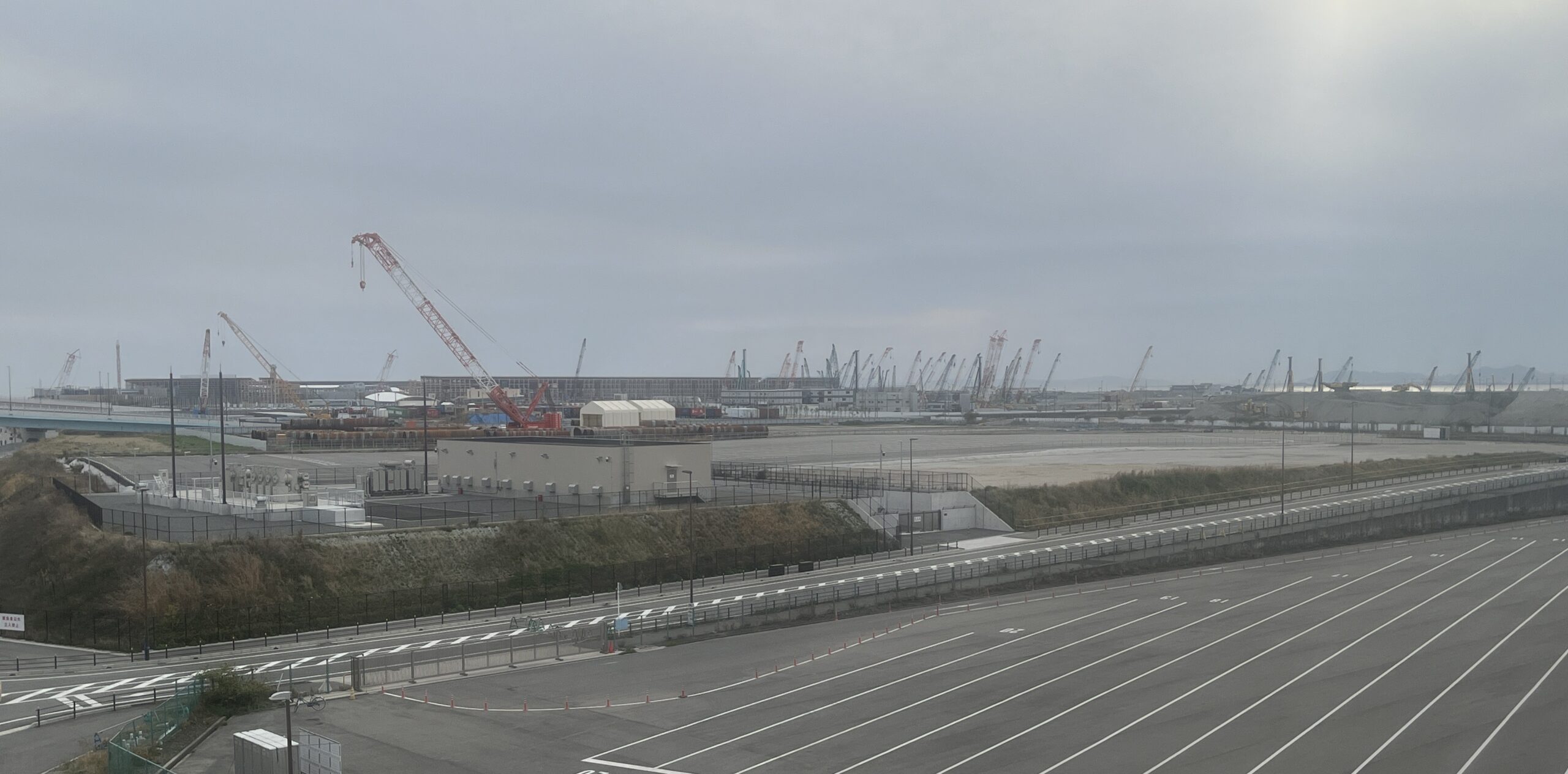 さて、道路に戻りましょう。大屋根リングの解体がより広範囲にわたって確認できたほか、会場跡地に隣接しているエリアで進められているIR(統合型リゾート)の工事も確認できました。帰る途中で立ち寄った、咲州にある高さ256mのさきしまコスモスタワーからも、夢洲での工事の全体像がよく見えました。
