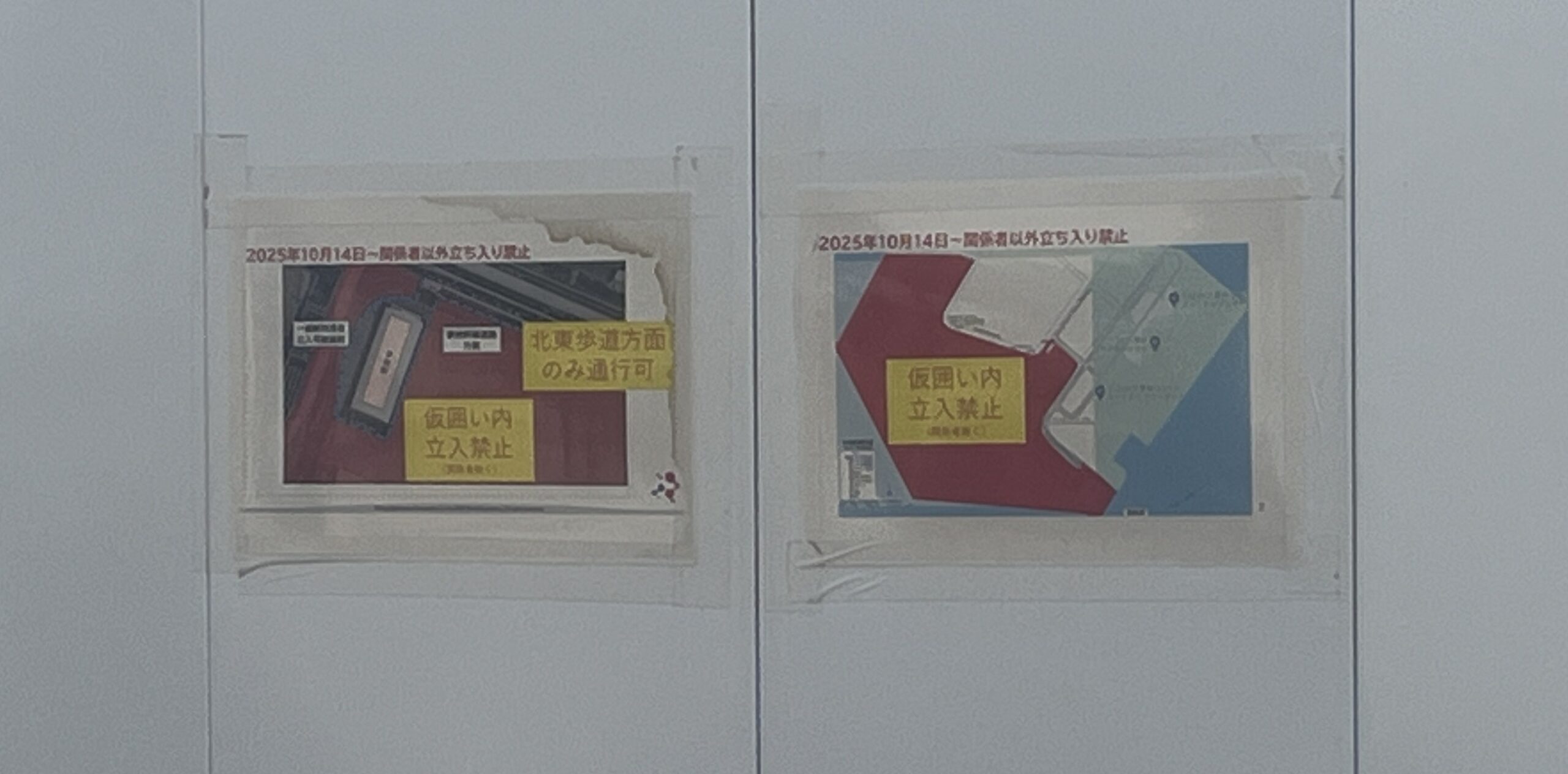 フェンス越しには、解体工事中の大屋根リングの姿を見ることができました。自分の目にはかなり進んでいるように映りましたが、朝日新聞の報道によると、解体されたのは3割ほどに過ぎないそうです。リング部分は解体されているのに、エスカレーターが撤去されていない光景からは、無用の長物を指す芸術概念「トマソン」の言葉が浮かびました。